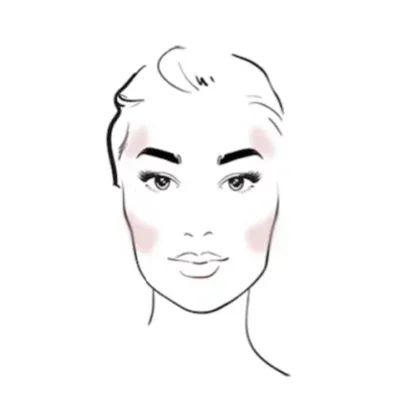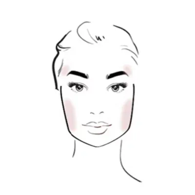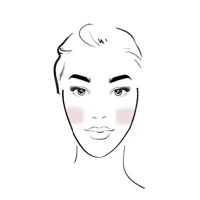 Riešenie: Lícenku nanášajte na najvyšší bod lícnej kosti a pretiahnite ju takmer vodorovne smerom k línii vlasov.